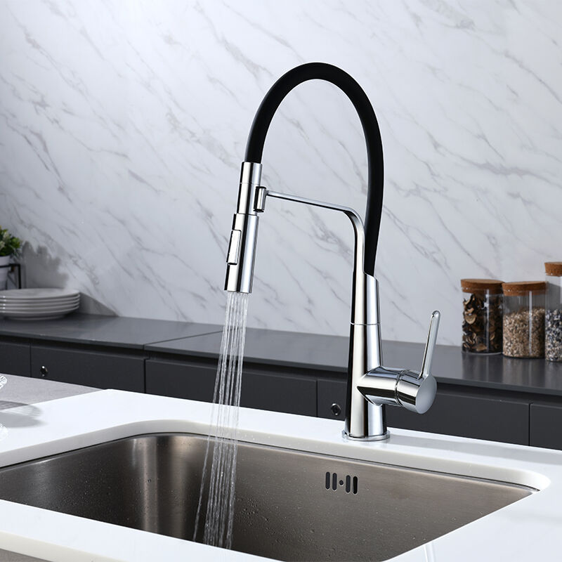 Tall high-rise pull-down kitchen faucet with swivel spout, dual-function sprayer, easy to fill large pots and buckets, perfect for family kitchens and daily cooking tasks at home.