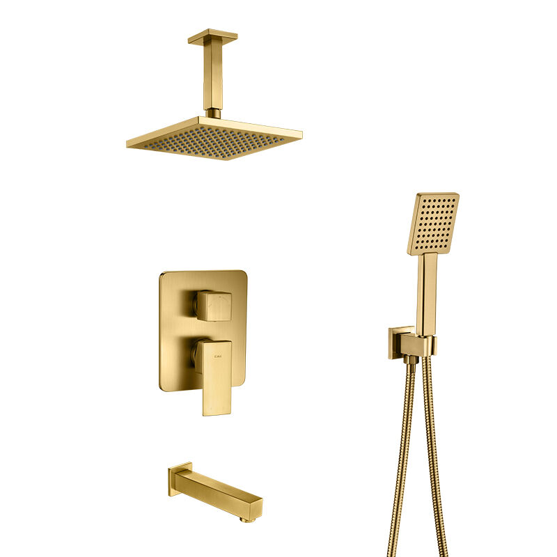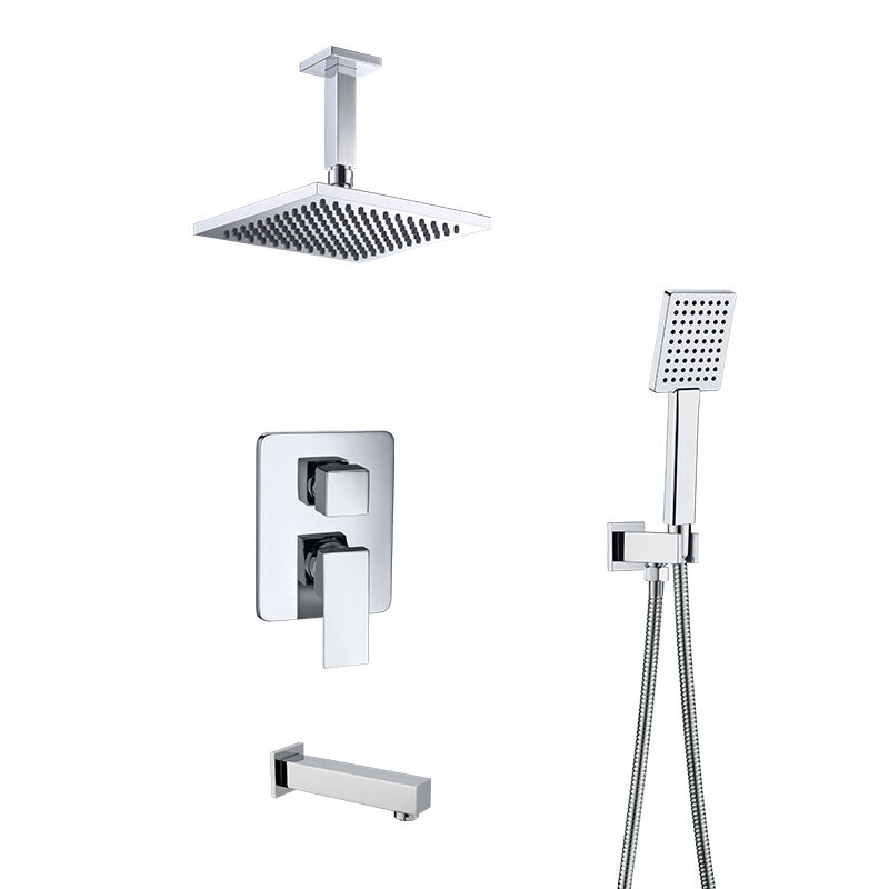 Concealed shower mixer with diverter valve to control multiple outlets. CAE Sanitary Fittings’ brass fixture, chrome finish, smooth lever operation. Perfect for shower systems with overhead & hand showers