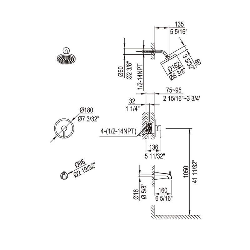هيكل نحاسي: مصنوع من النحاس المصبوب الصلب. وحدة التحكم ذات وظيفتين ومقبض واحد: ذراع واحدة تتحكم في درجة الحرارة وكمية التدفق معًا؛ بينما يُستخدم مقبض منفصل لتوزيع التدفق أو دورانه لاختيار المخرج المطلوب.
