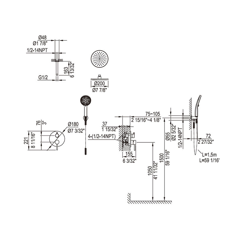 مجالات الاستخدام: الحمامات الرئيسية المزودة بدش علوي ودش يدوي، والحمامات المُيسَّرة، وحمامات الفنادق.