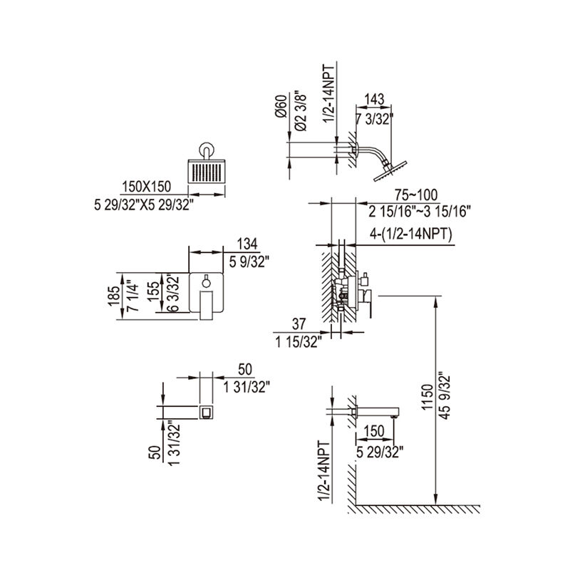 منافذ دخول وخروج قياسية بقطر ١/٢ بوصة بنظام الخيوط الوطني (NPT): متوافقة مع معظم صناديق التركيب الخشنة ومجموعات التشطيب المستخدمة في أمريكا الشمالية.