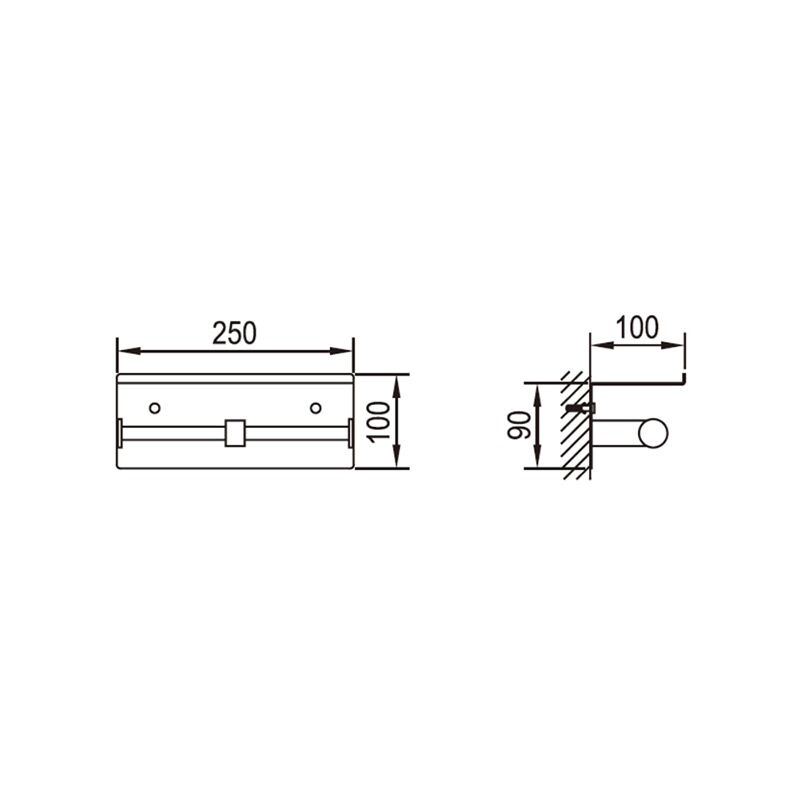 حامل ورقي تواليت ذو وجهين يحمل لفتين من ورق التواليت. رف تخزين متعدد الاستخدامات، كبير بما يكفي لحمل مختلف الأغراض عليه، مثل الهاتف المحمول أو مكبّر الصوت البلوتوث أو غيرها من الأجهزة الإلكترونية الصغيرة.