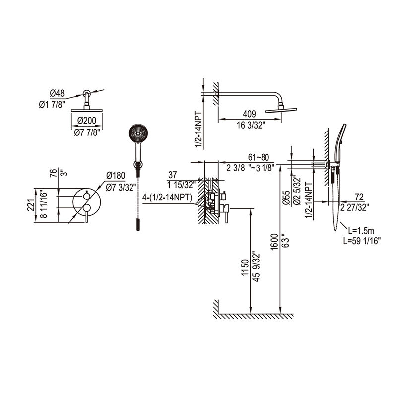 مجالات الاستخدام: الحمامات الرئيسية المزودة بدش علوي ودش يدوي، والحمامات المُيسَّرة، وحمامات الفنادق.