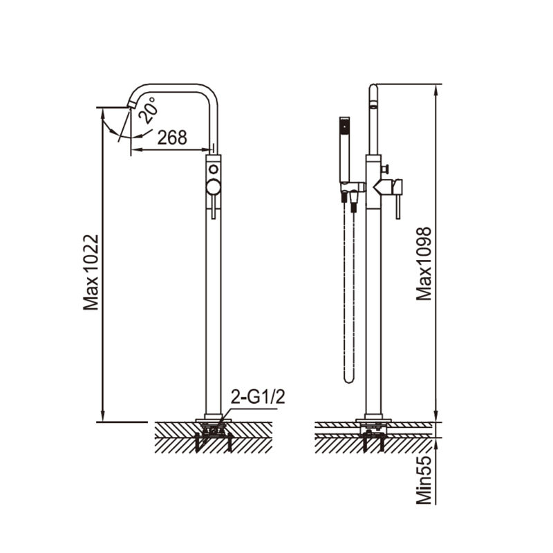 المقدمة ٦: مزدوج - وظيفة مع مقسم للدش وحوض الاستحمام