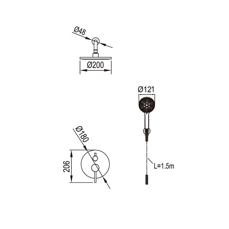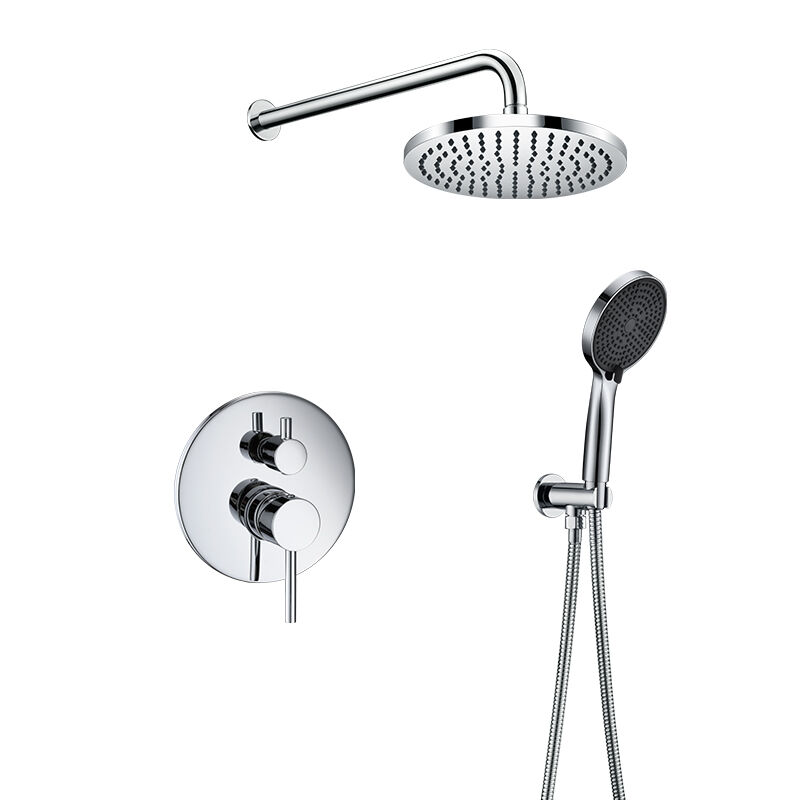 Dual-function concealed shower mixer: switch between shower head & hand shower easily. CAE’s durable brass fixture, chrome finish, leak-free valve. Ideal for contemporary bathrooms, easy to maintain.