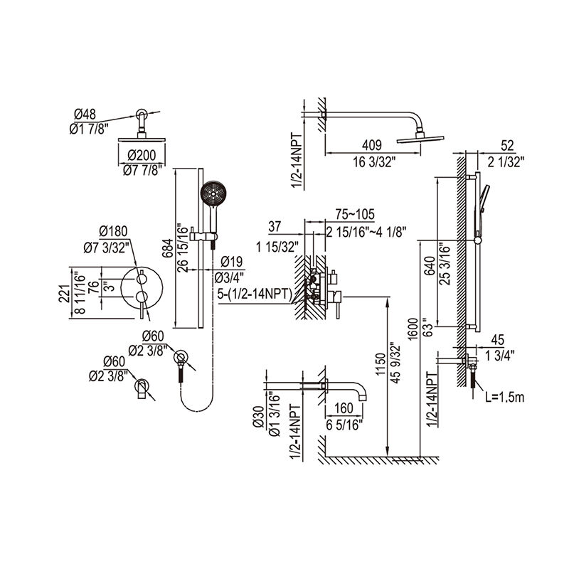 Applications: Luxury master showers. Custom shower systems with body sprays. High-end hotels and spas.