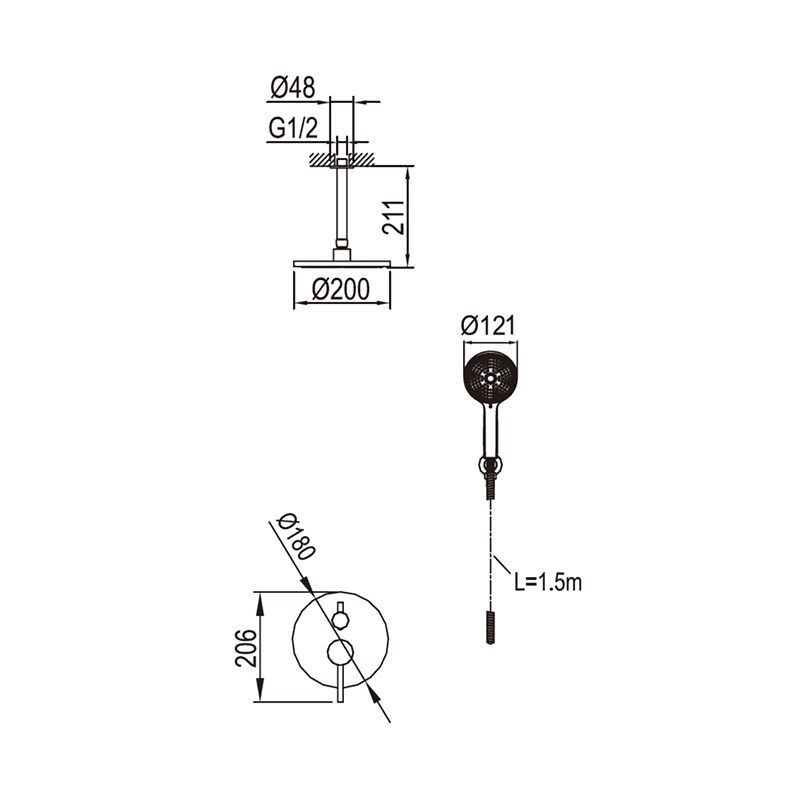 2 way Concealed Shower Mixer with ceiling shower arm and 8", dual-handheld include, different color finish can be customized.