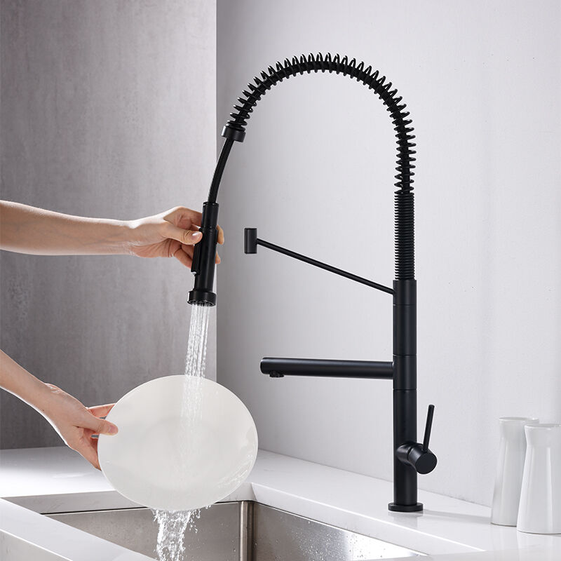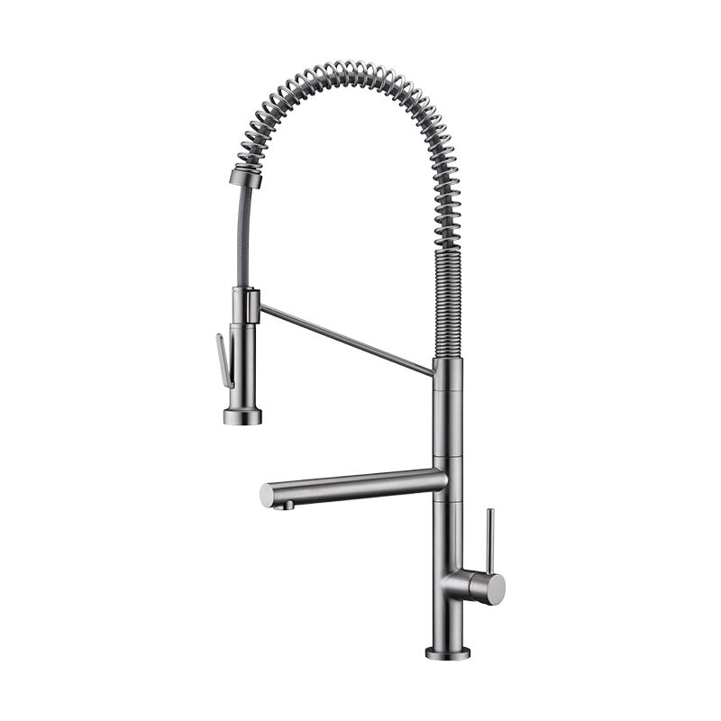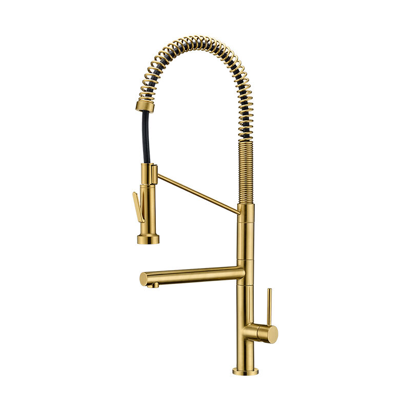 Lead-free brass pull-down kitchen faucet ensures water safety, with pull-down sprayer, eco-friendly product from CAE, perfect for kitchens using water for drinking.