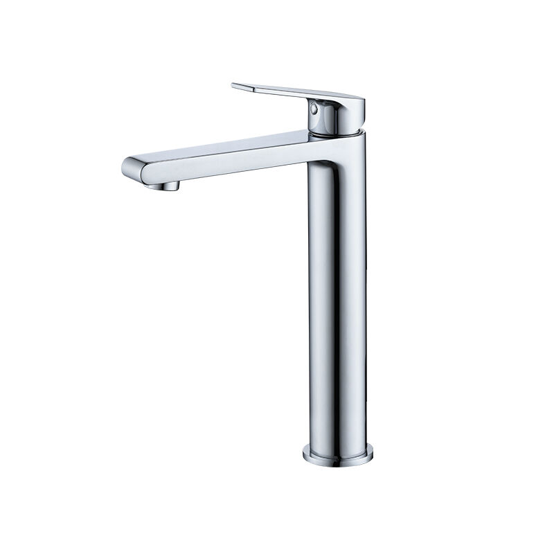 Single-hole lavatory faucet for modern vessel sinks. CAE’s brass chrome fixture, sleek design, single lever control, leak-proof, easy to match bathroom decor, ideal for new builds.